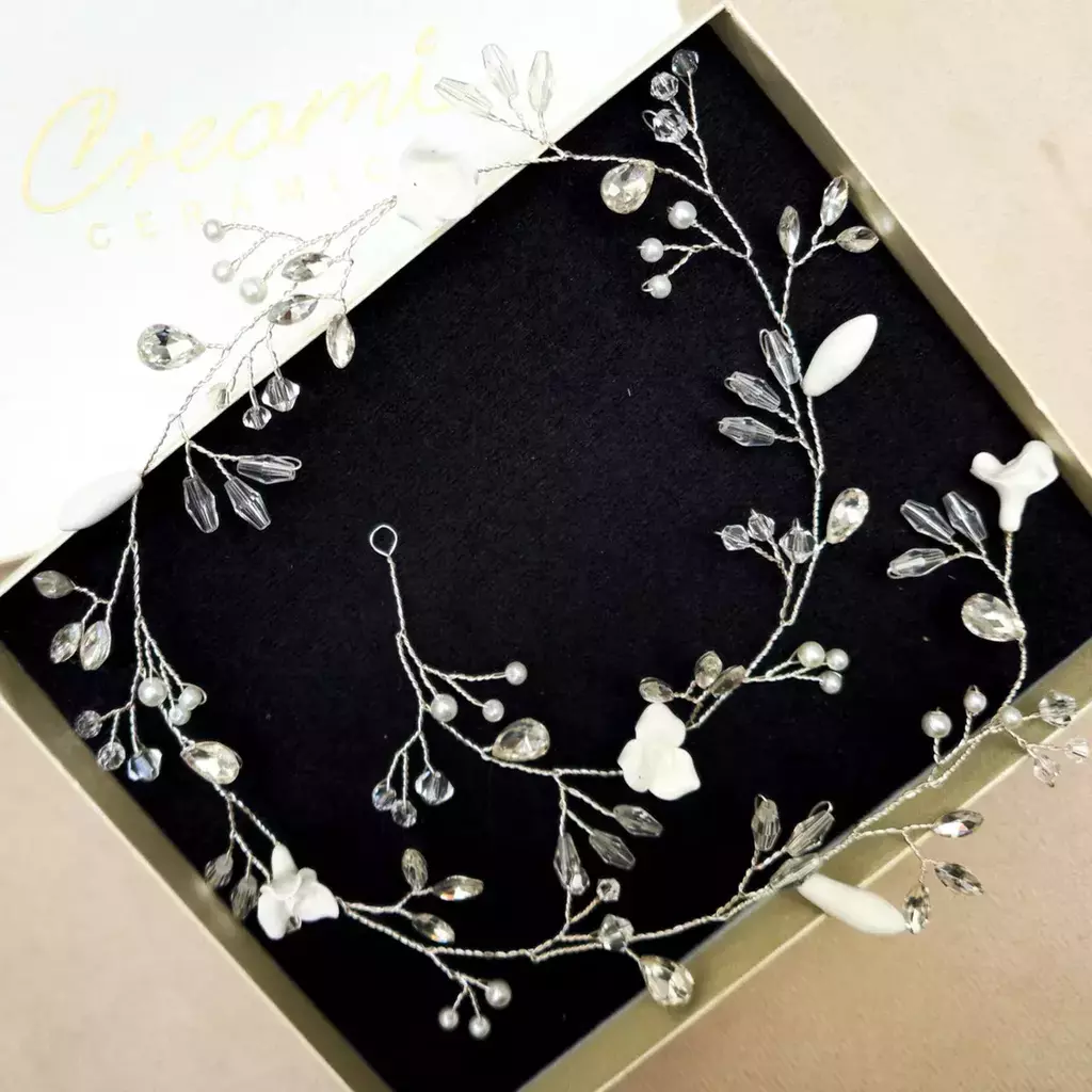 ¡Luce espectacular en tu evento especial con nuestro Tocado De Porcelana Novia - Gran Madreselva! Este hermoso tocado, elaborado de manera artesanal, combina la elegancia de la porcelana cerámica con el brillo de cristales y perlas, creando un accesorio único para la mujer moderna.